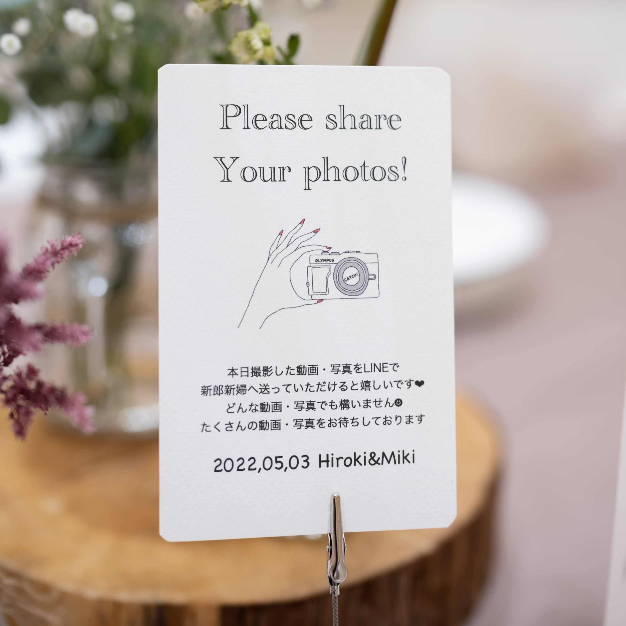 結婚式の写真を私たちに送ってほしいことをアピールしました。