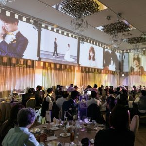 マッピングが特にすごいと感じた。2人らしい式にしたいという思いがあったので、マッピングは凄く理想的でした。また、それ以外にも、挙式での映像や、プロフィールムービー、レーザーどれも納得のいくものでした。式後多くの人が良かったと言ってくれたので嬉しかったです。
