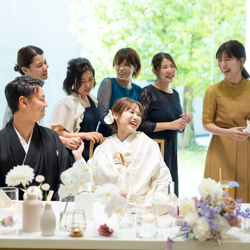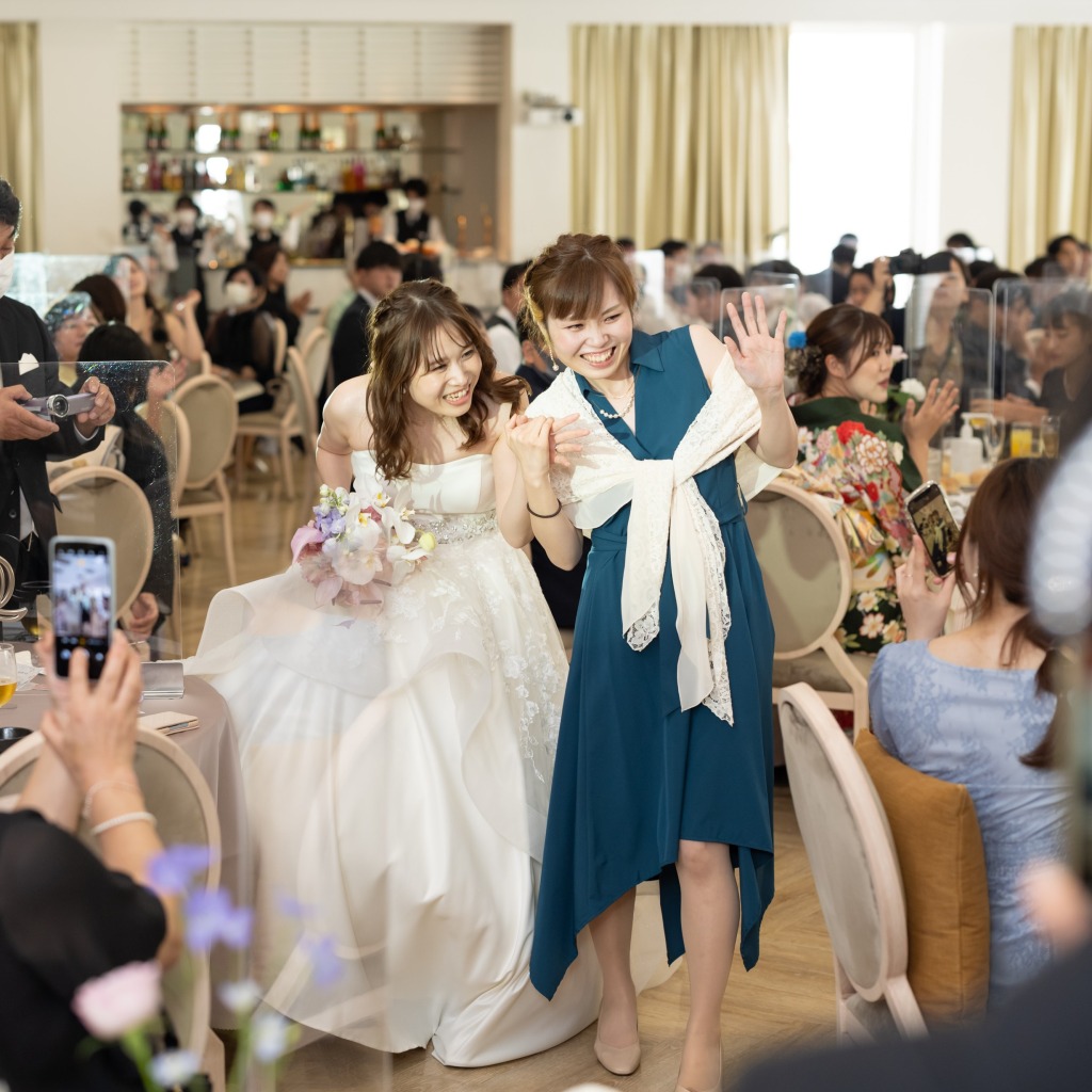 新婦様:想像以上に楽しくて本当に一瞬で終わってしまいました。ゲストの皆さんから笑いあり涙ありの結婚式で素晴らしかったよと言ってもらえてとても嬉しいです。