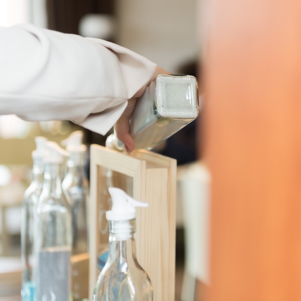 会場の雰囲気づくりには欠かせない装飾関係。ソファー席はゲストの皆さんとの距離が近くなれるため、絶対に取り入れたいなと思っていました。