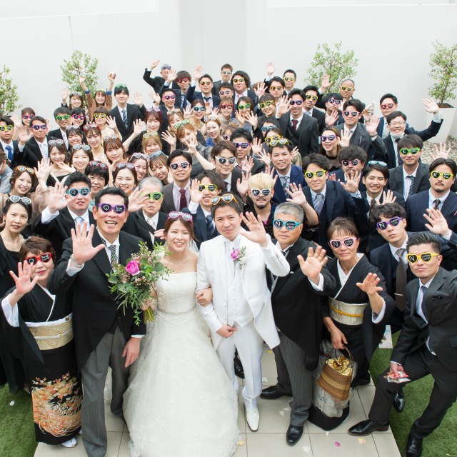 とにかく、日頃からお世話になっている皆様に感謝の気持ちを伝えたい!喜んでいただきたい!という気持ちが結婚式をする上での私たち夫婦の1番の願いでした。挙式ではお菓子撒き、披露宴ではエスコートサングラス、ペンライトを使ったドレスとタキシードの色当てクイズ、テーブル対抗のクイズチャレンジ、デザートビュッフェ、余興などイベント盛りだくさんの内容を詰め込みました!イベント盛りだくさんでどのイベントも盛り上がり終始楽しく結婚式を終えることが出来ました。