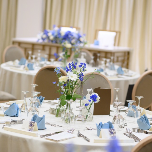 また、カラードレスも水色で式場の雰囲気にもマッチしてて良かったです。