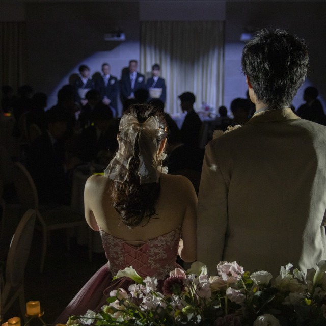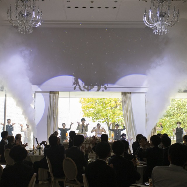 会場がとてもも綺麗で披露宴会場アイリスでは大きな窓から水(たき)が見えるのがすごく綺麗で一目惚れしました!見学で見せていただいた映像に感動し映像を流したいと思いました♡♡