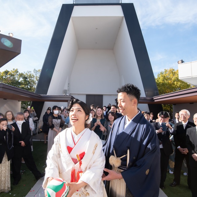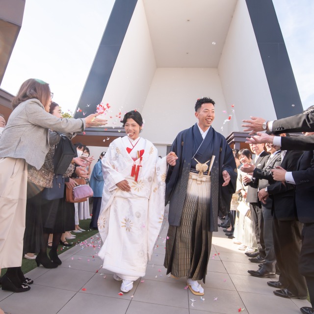 和装人前式を行いました。チャペルでの挙式だったため参考にできる資料が少なく自分たちで考えることや、プロデューサーさんからの提案で家族参加型、参列者参加型の人前式ができました。和装でも合うチャペルだと思うので、一味違う自分たちだけの挙式ができてよかったです。