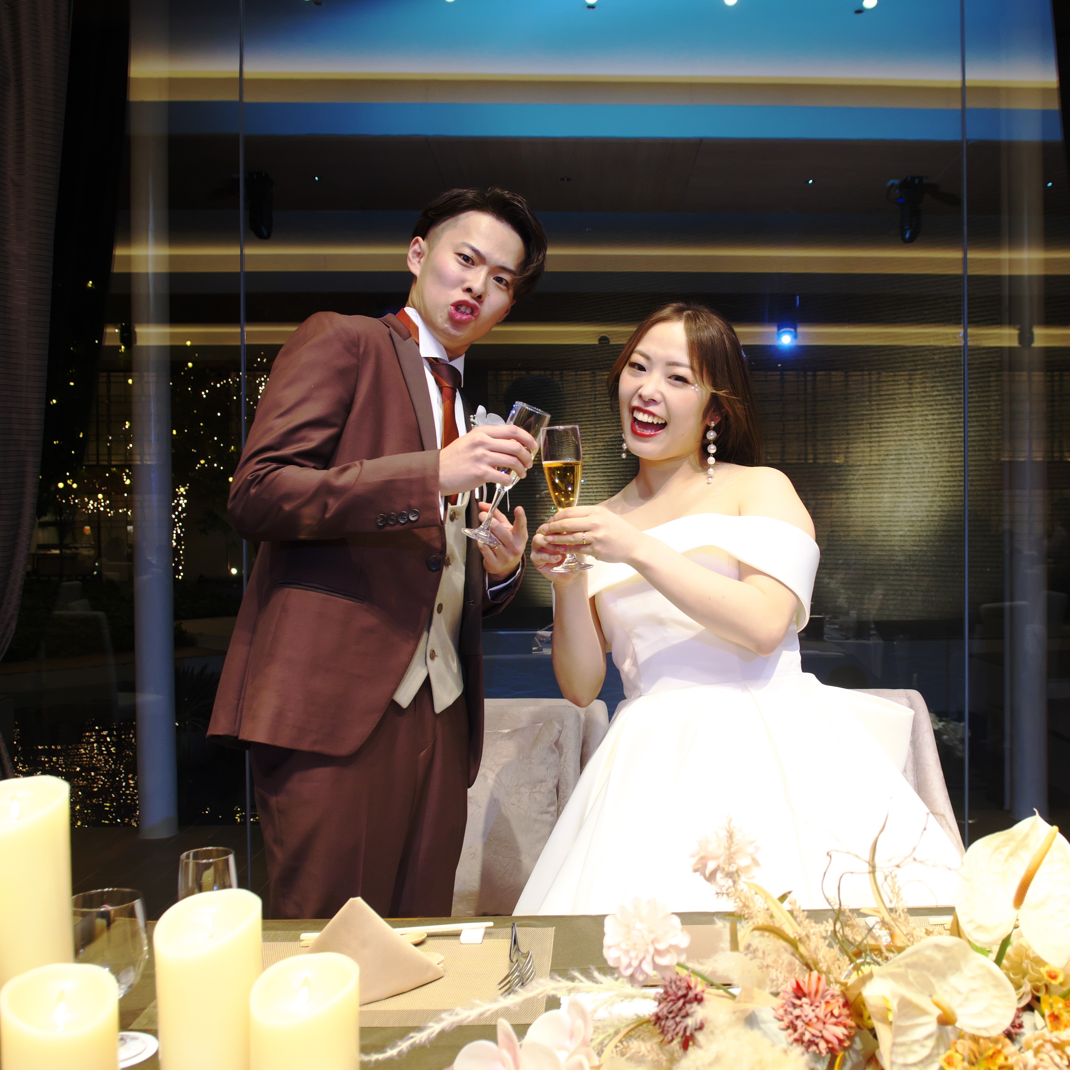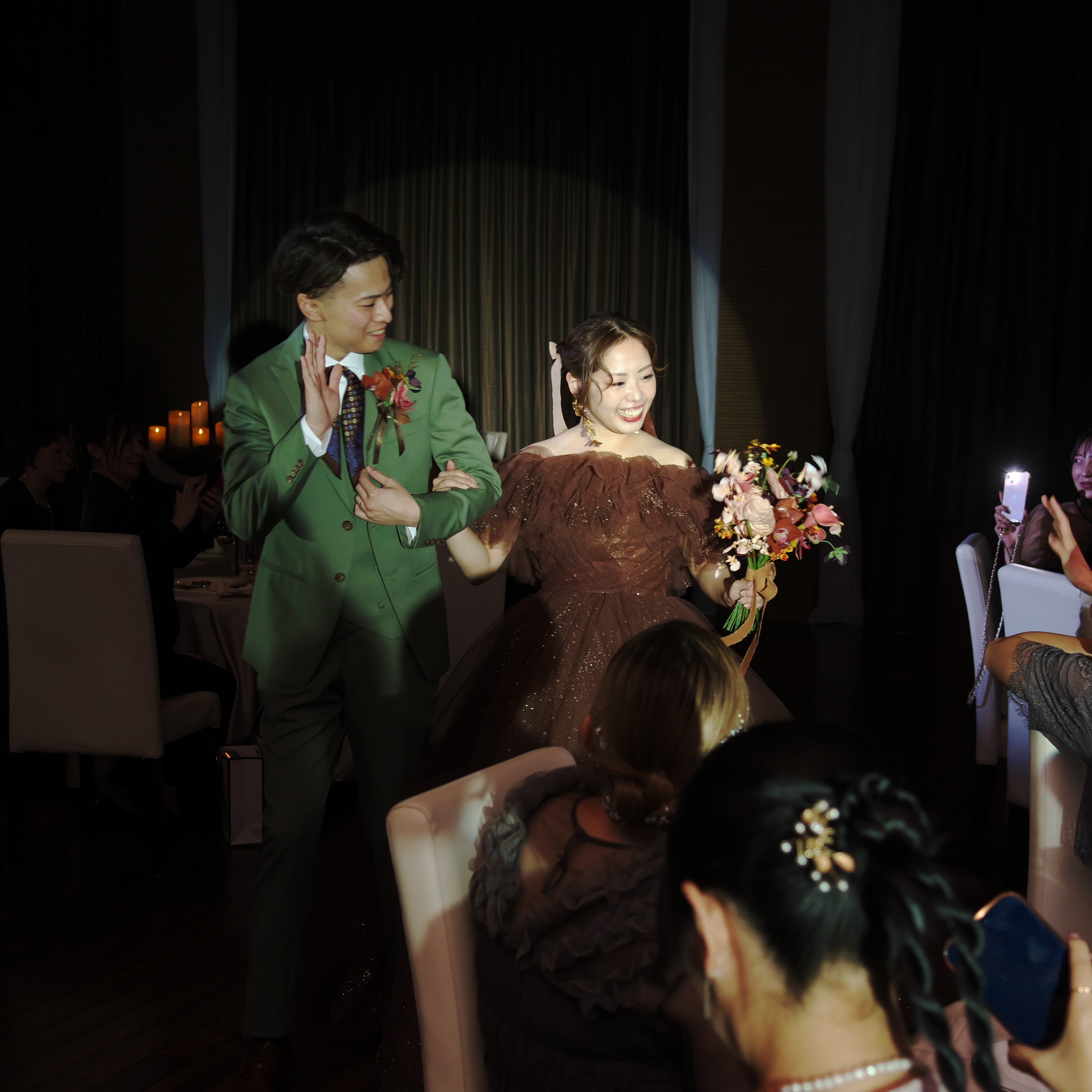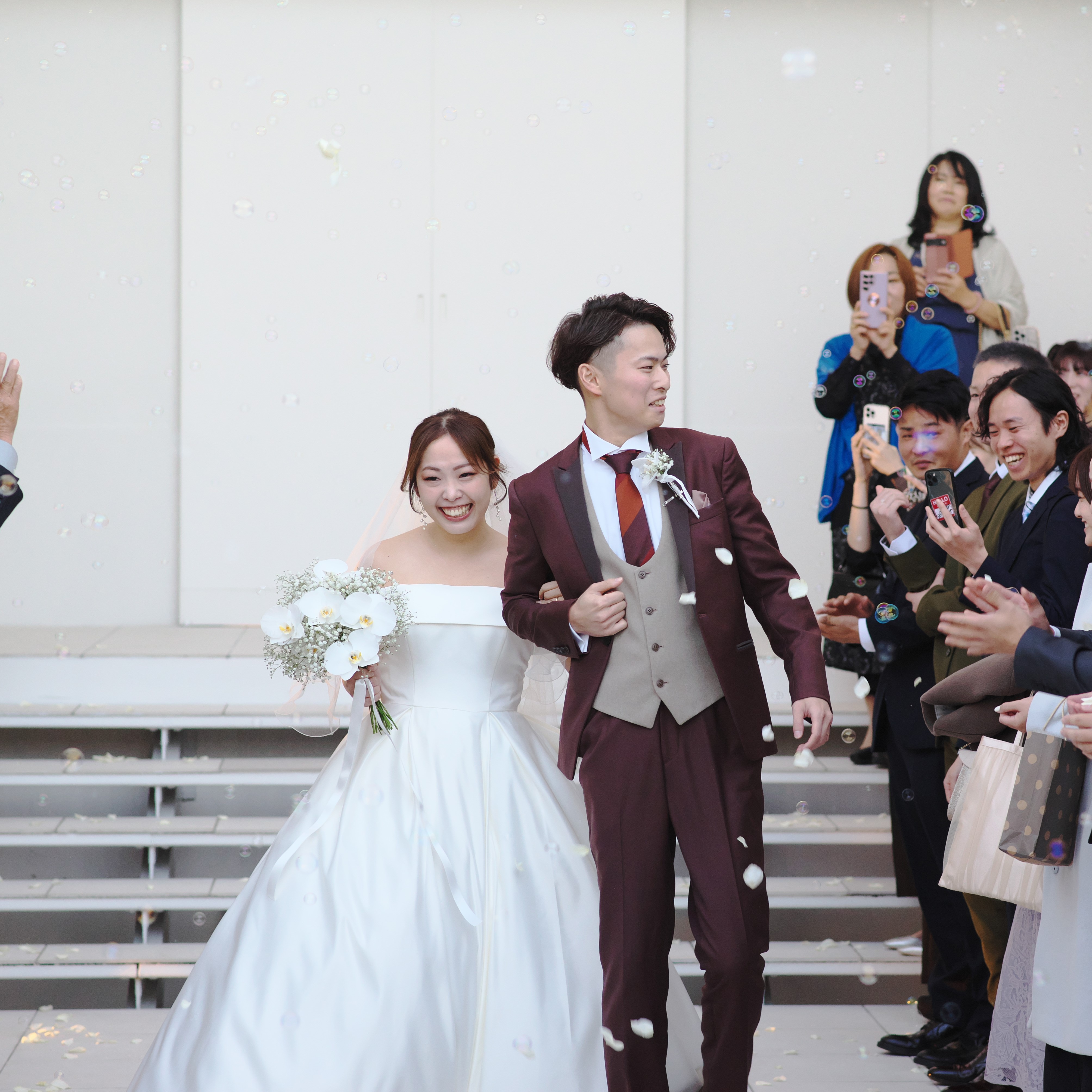 あっという間結び、自分たちほんとに結婚式したのかな?と思う瞬間もありました。サプライズリングセレモニーは友達が持ってきてくれておめでとうって言ってくれてとても嬉しかったです。料理も演出も最高やったよってみんな言ってくれて結婚式を挙げてほんとに良かったです。最高の一日になりました。