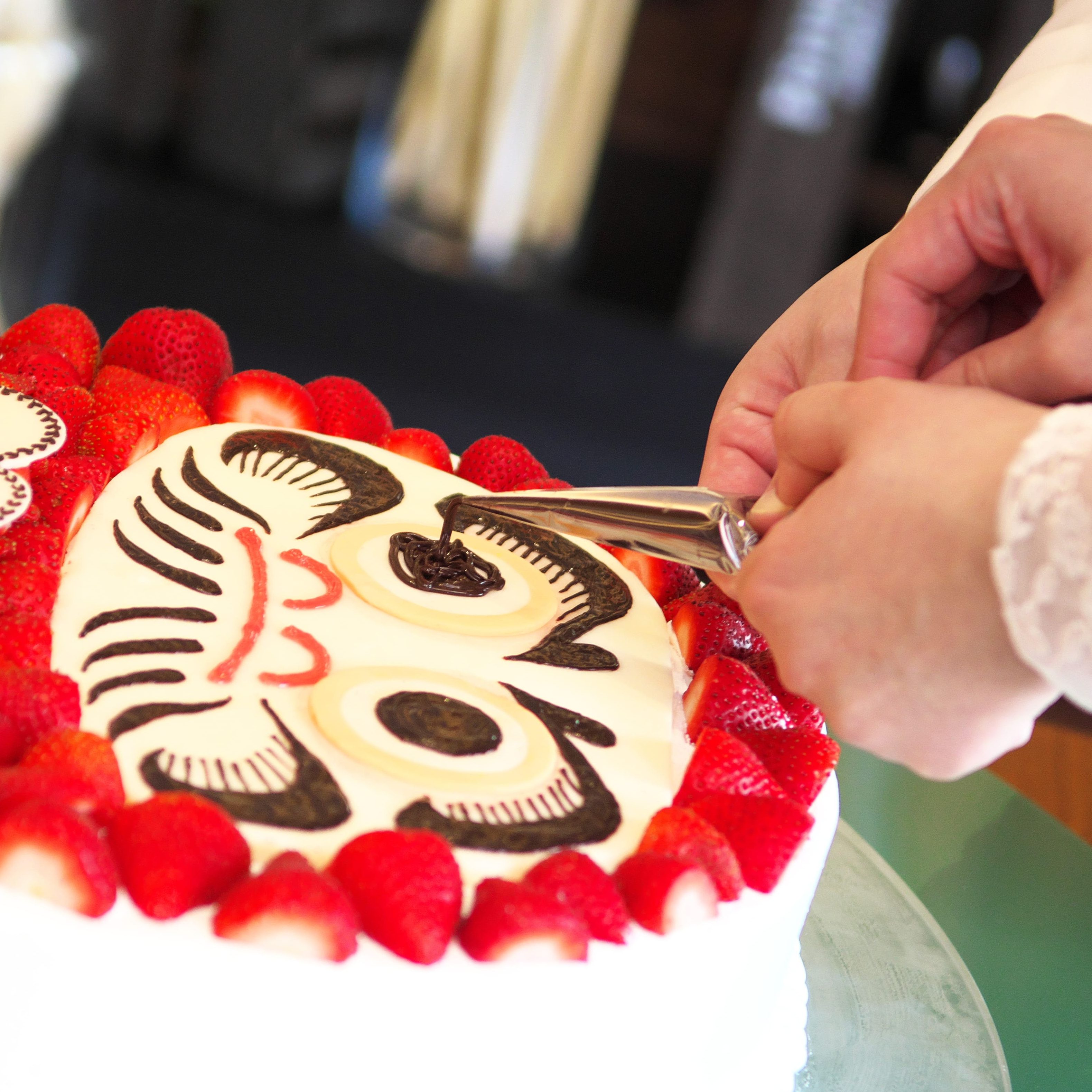 私たちは当日和装をしなかったのでケーキは苺のだるまケーキにして
