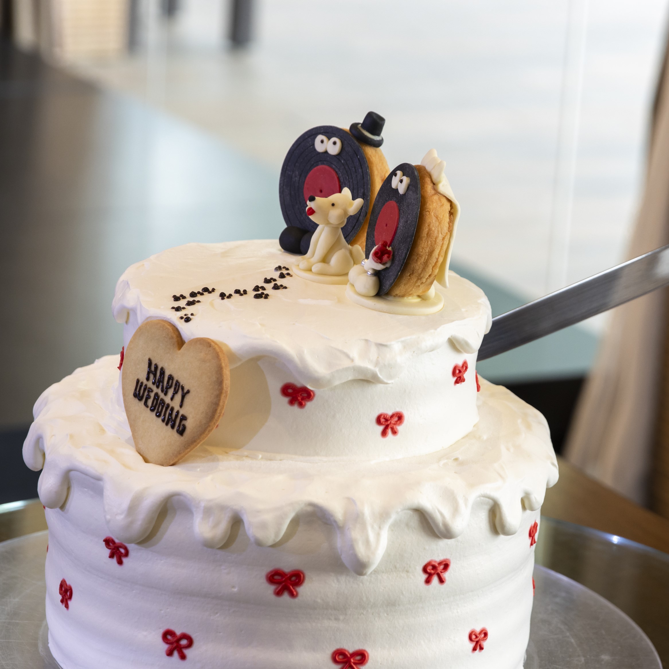 中でも絶対に取り入れたかったレコードを使用した結婚証明書にはゲストの皆さんにご署名いただいて現在は額に入れて自宅に飾っています。また、ライブチケット風のエスコートカードはBGMクイズの投票券としても使えるように作成しました。準備は非常に大変でしたが、当日の映像を見てみると、ゲストの皆さんが楽しそうに装飾を見てくれていてとても嬉しかったです。