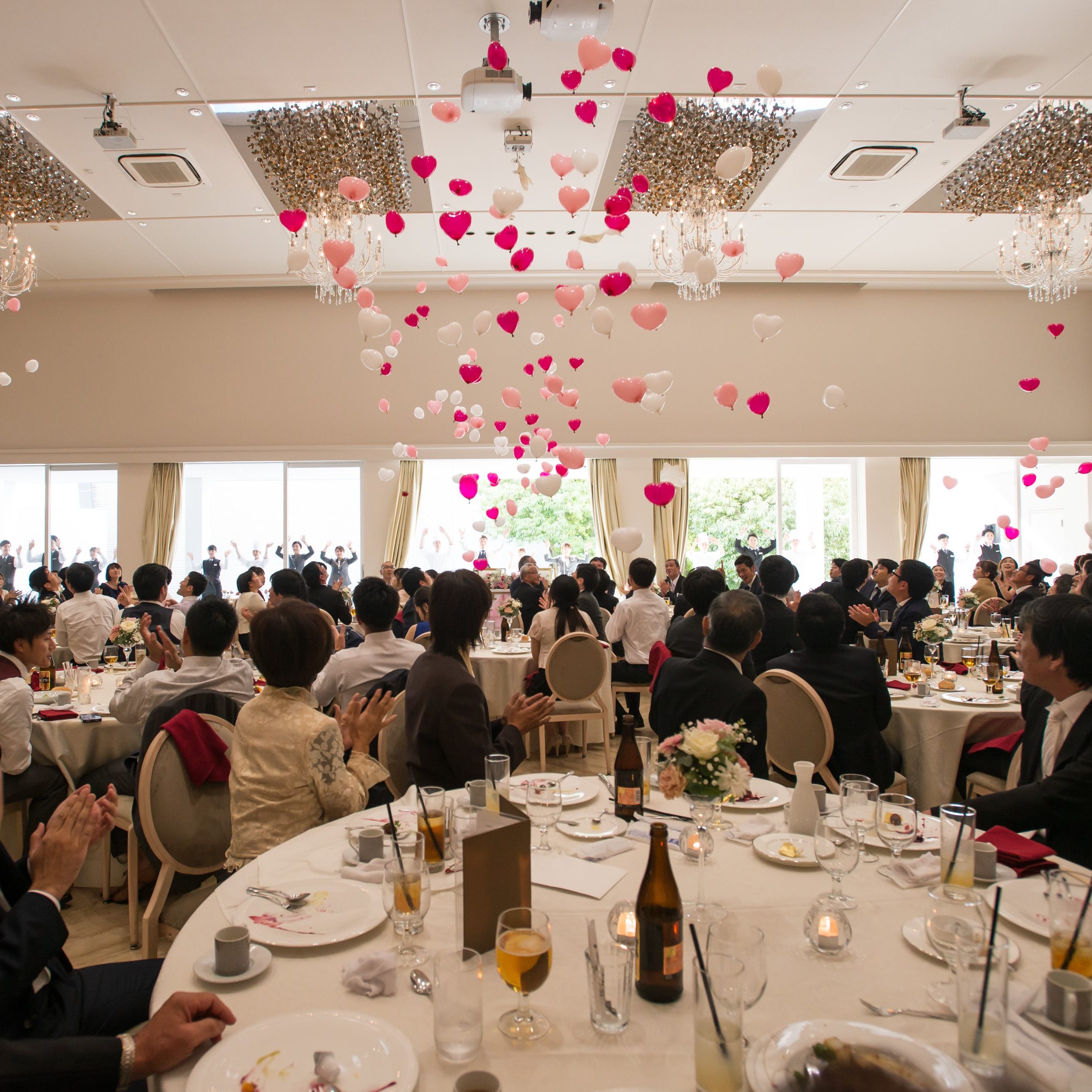 高砂にリボンをお願いしたり、ウェルカムスペースに風船を飾ったりと工夫をし、白とピンクを基調としたシンプルで可愛い雰囲気にすることができました。