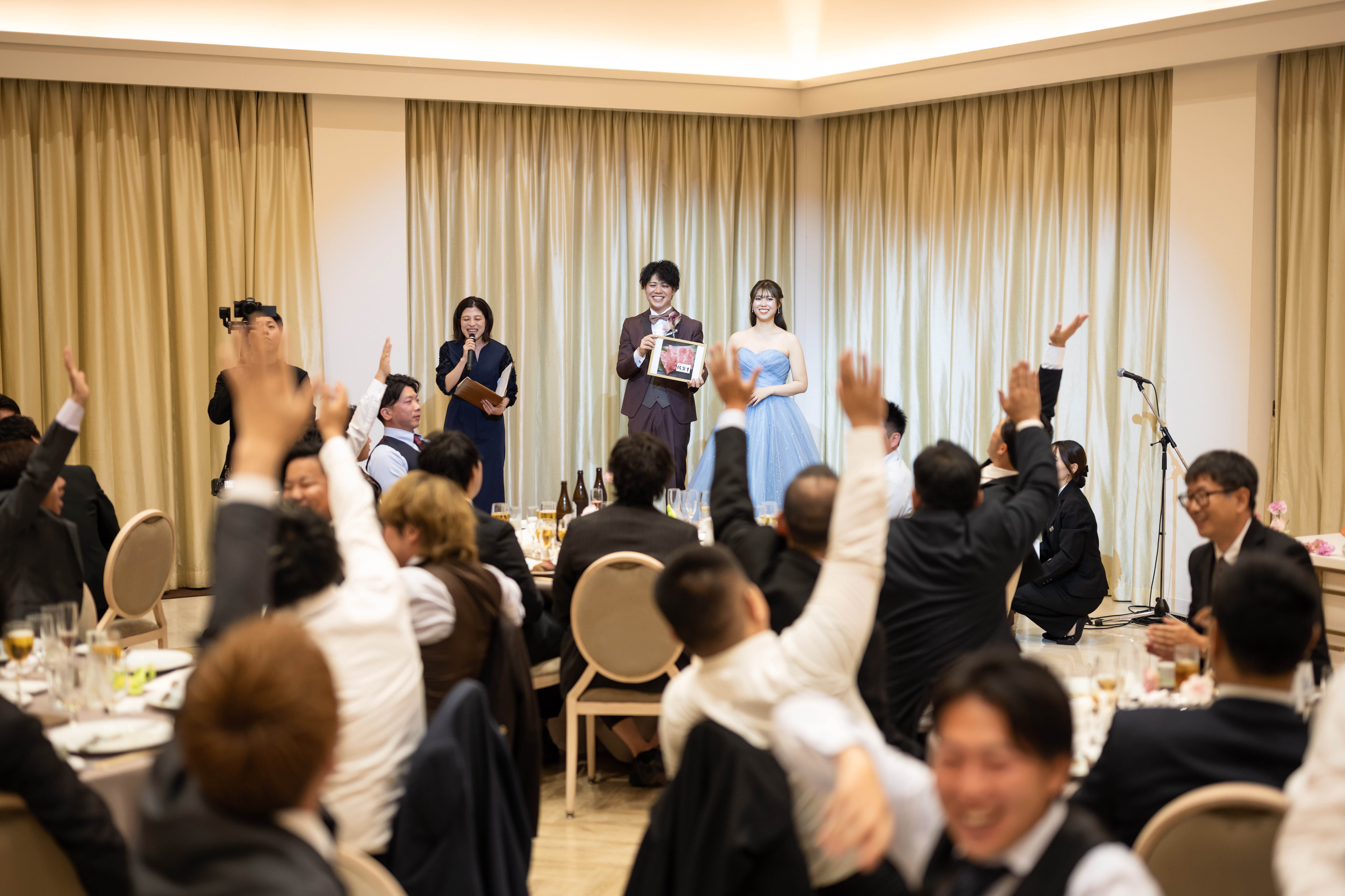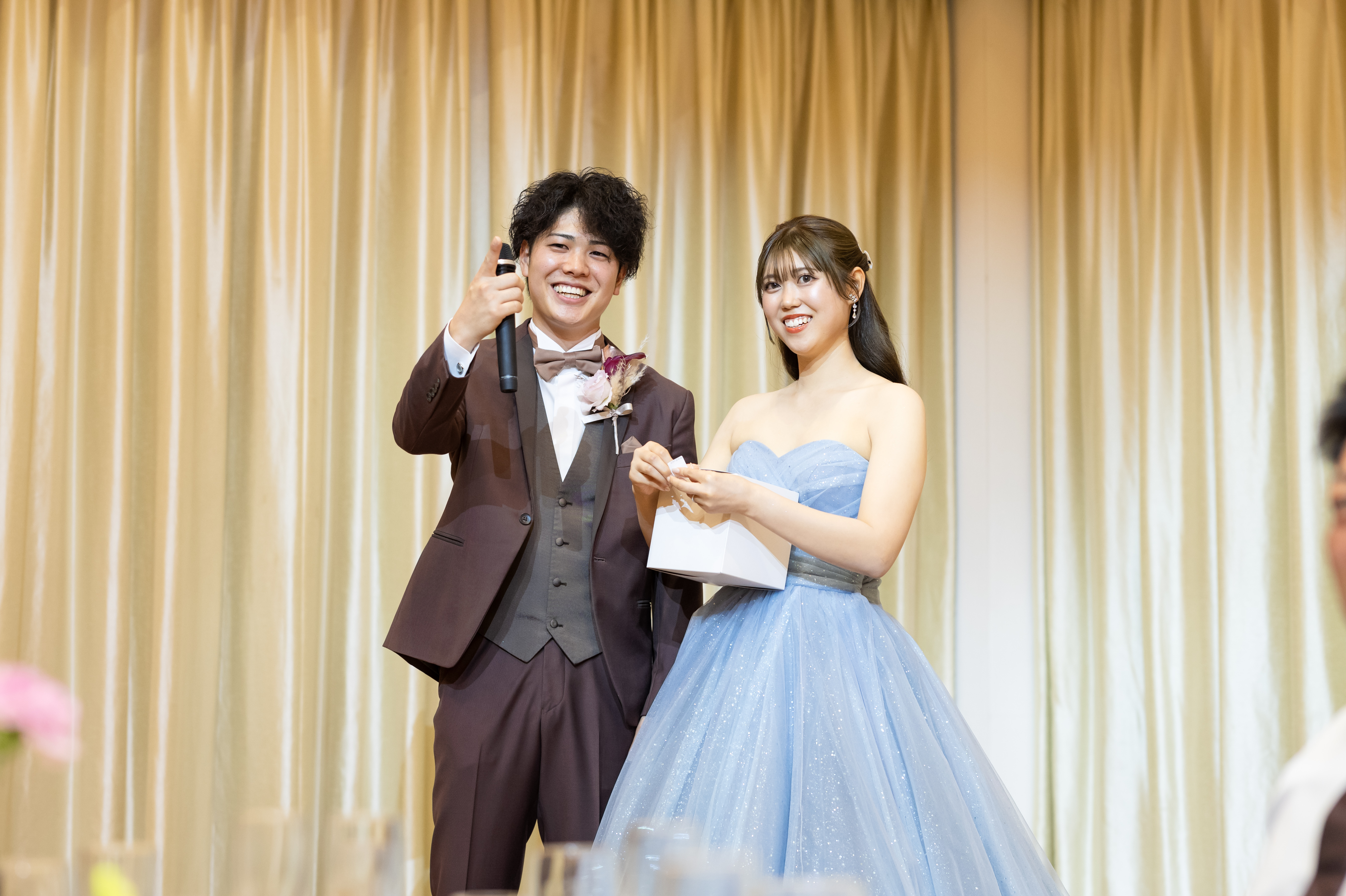 再入場後にはドレスの色あても行い、色を当てた方だけではなく、ハズレてしまった方も楽しめるようにと、参加者全員が対象の抽選会も考えてくださったのもゲストみんなに楽しんでほしいというおふたりの思いを感じました。
