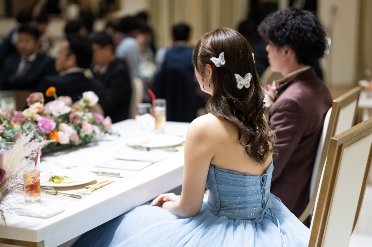 私も当日まで私も知らされていなかったカラードレスの色は、拝見するその瞬間までドキドキしていてとても楽しみでした。