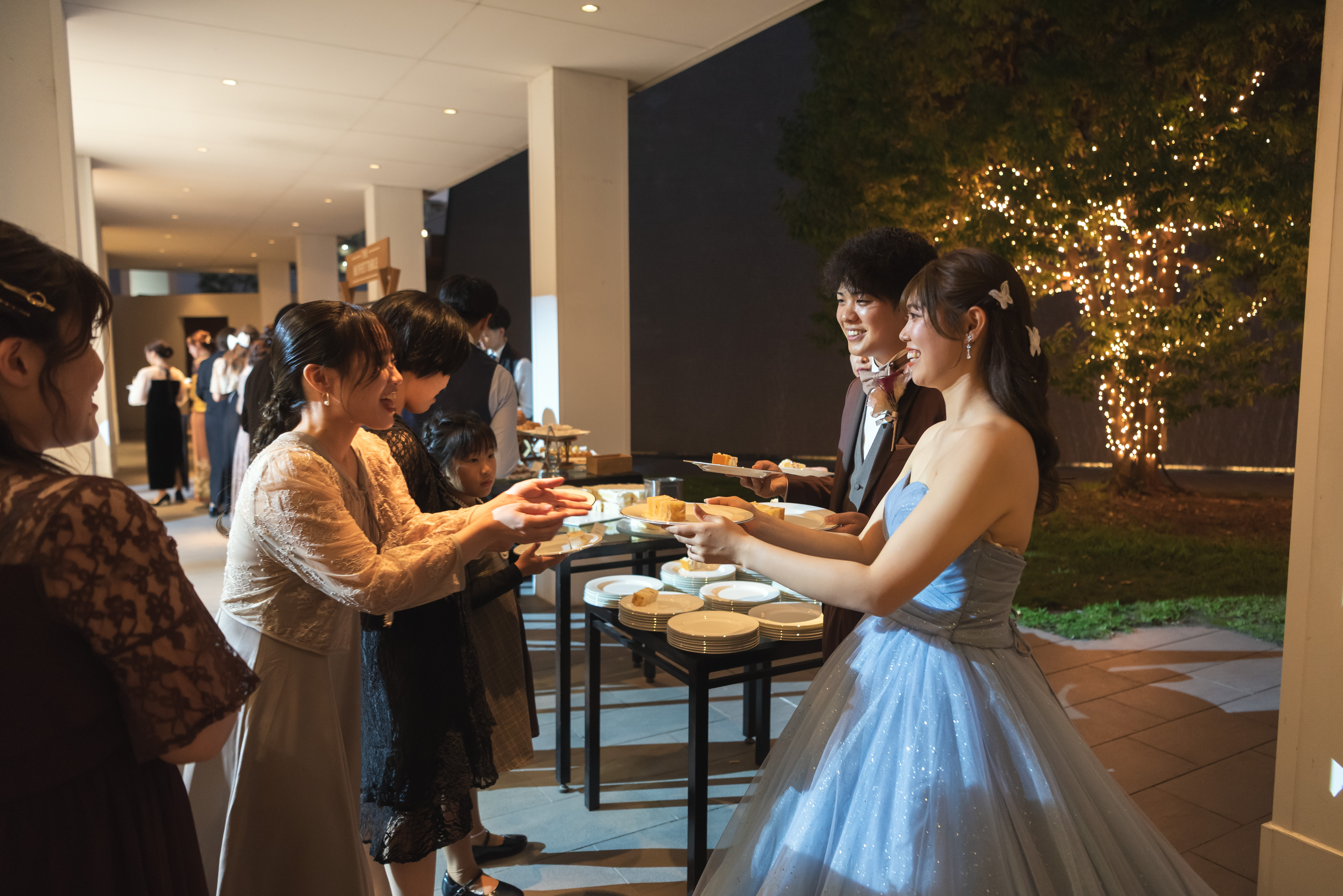 披露宴の後半にはデザートブッフェも実施。大行列になるくらいとても人気でたくさんの方にお腹いっぱい楽しんでいただけました。