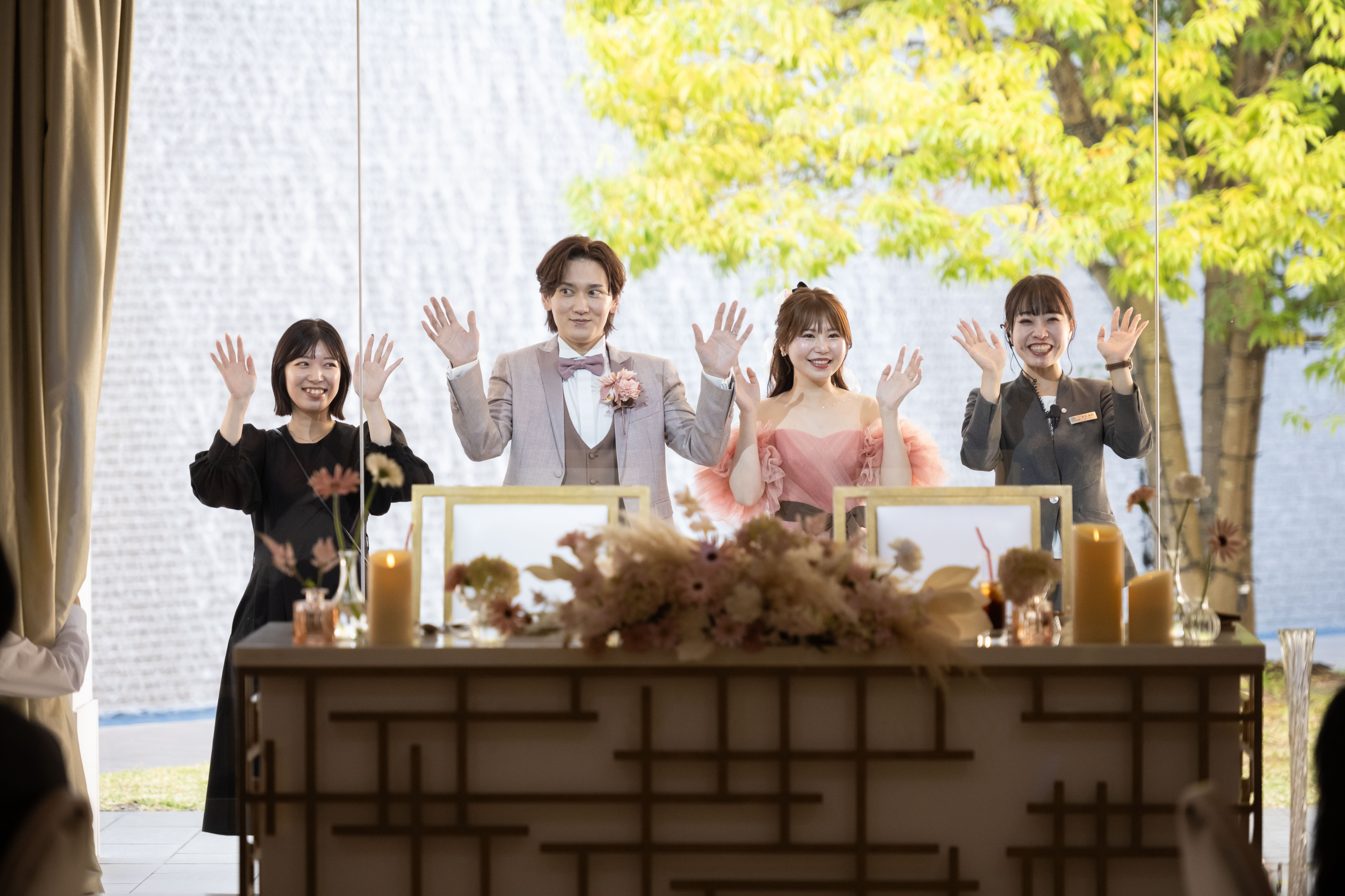 進行ひとつひとつにおふたりらしさが詰まっており、笑顔と拍手に包まれた空間は、まさにおふたりらしい温かさに満ちた時間だったと感じています。