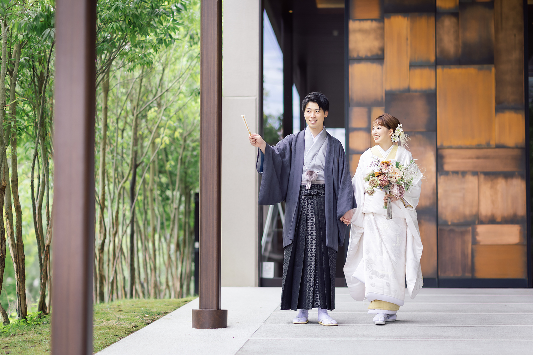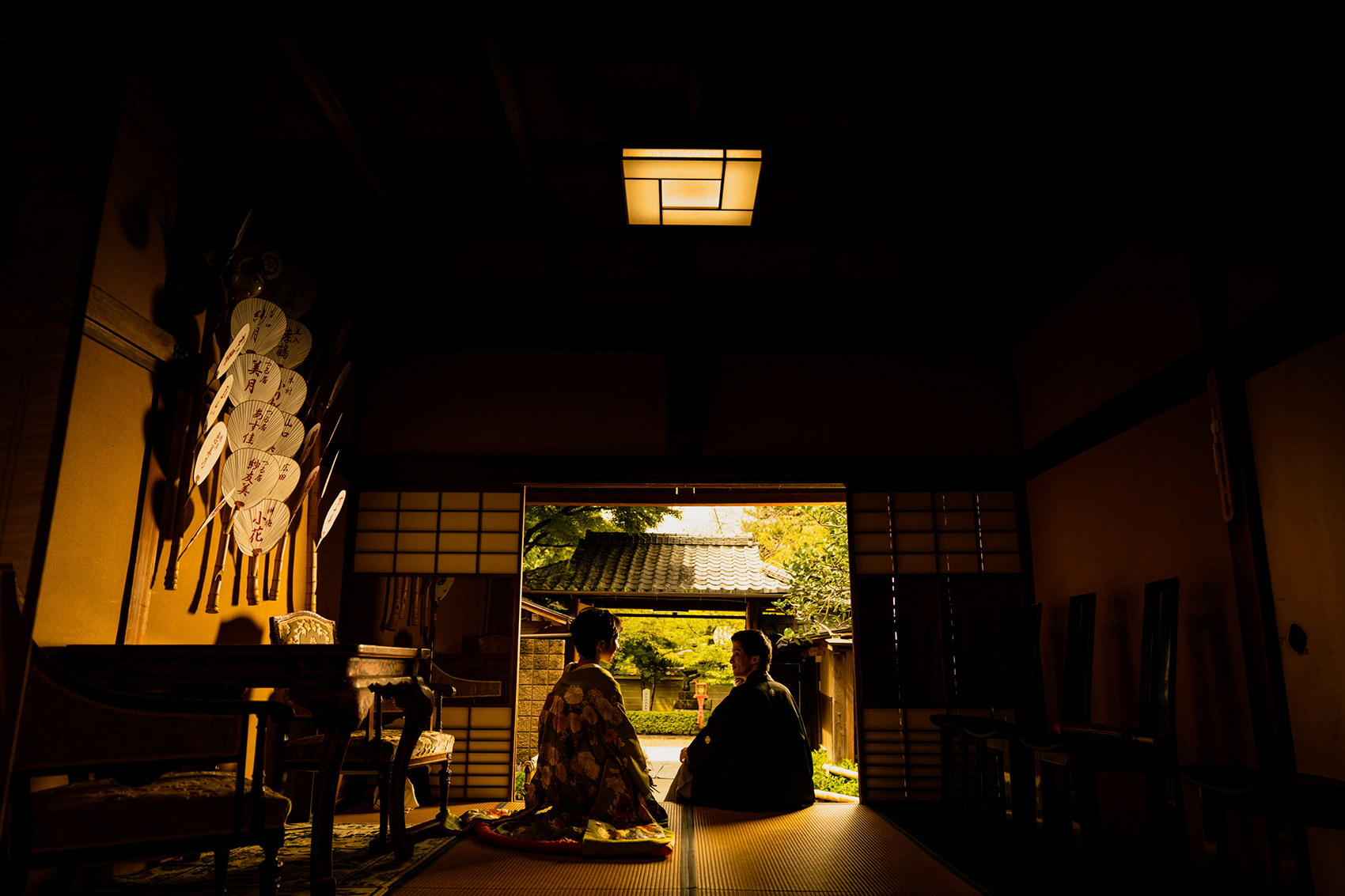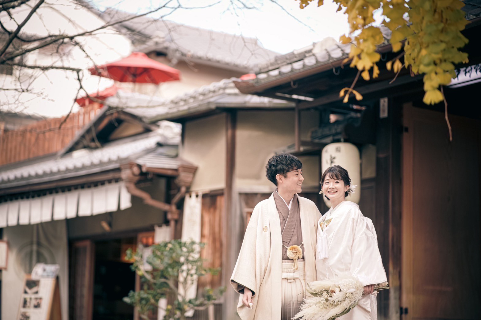 祇園祭で有名な八坂神社の鳥居内にある会場。室町時代から480年、八坂神社とともに歴史を重ねてきました。時代を超え受け継がれた静謐で雅やかな世界観が味わえるのはここだけ。日常を忘れるほど美しい日本の歴史空間で撮影を。