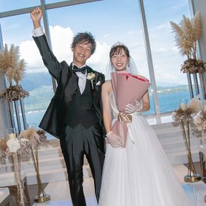 挙式会場は、鹿児島のシンボルである桜島と錦江湾が望める素敵なチャペルです。