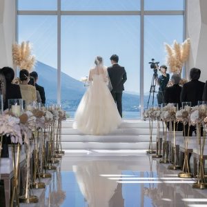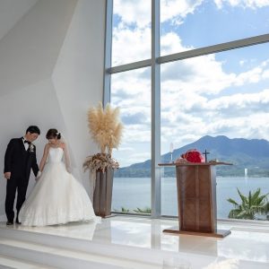 おふたりが生まれ育った鹿児島のシンボル桜島を背景に