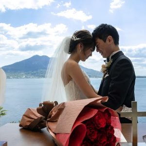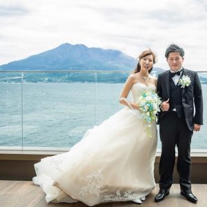 チャペルや披露宴会場では鹿児島のシンボル「桜島」と
