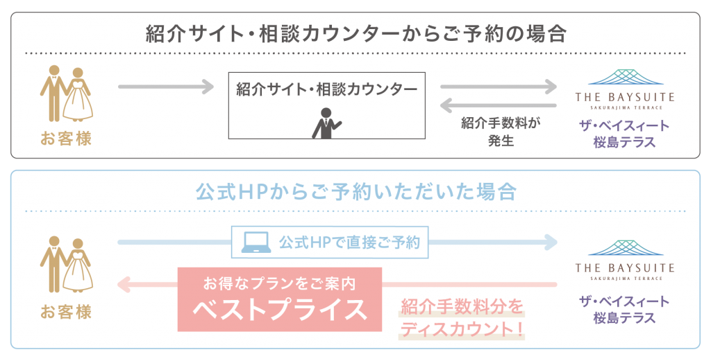 インターネットサイトからのご予約に比べて、当公式ホームページでご予約いただくと、