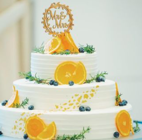 続いて、カジュアルな雰囲気にもピッタリのオレンジを使用したケーキ。
