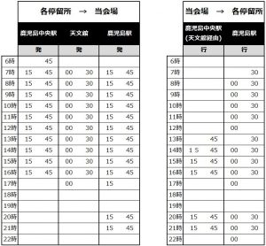 ※シャトルバスの運行時間は日にちによって異なりますので下記をご参照くださいませ