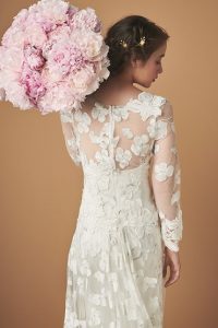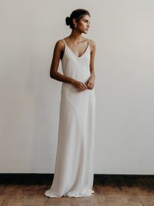 滑らかなフレンチシルククレープを使用した背中のドレープが美しい1着