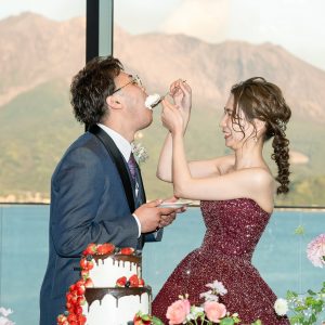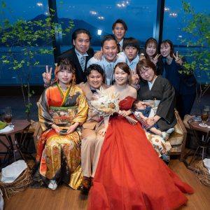 日が沈む前は雄大な桜島と一緒にご結婚式を楽しむことができ