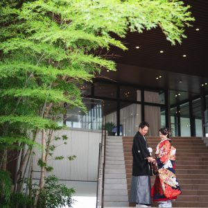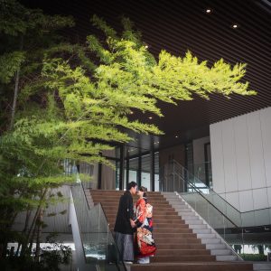 式場の中でも緑をバックに写真映えするショットをお撮りいただけます。