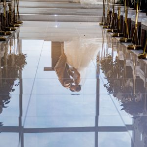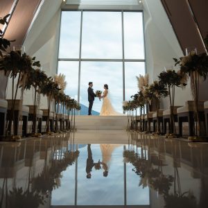 バージンロードの大理石に反射するおふたりの姿がとても綺麗です♡