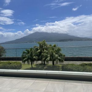 桜島と海を近くに感じていただけるラウンジテラスでは