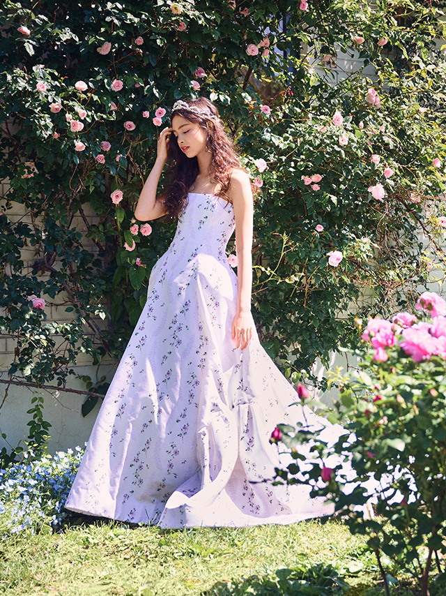 優しい色味で描かれたオリジナルの小花柄で世界中のバイヤーを虜にした1着