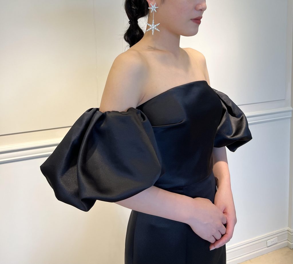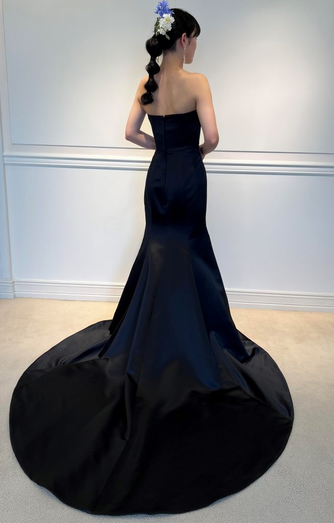 トレンドのブラックカラーで仕立てたスタイリッシュなマーメイドドレス