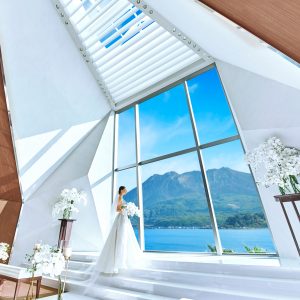 鹿児島のシンボル”桜島”を正面に愛を誓う開放感のあるチャペルでの挙式入場体験