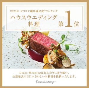 「2023年 オリコン顧客満足度🄬ランキング調査 ハウスウエディング 料理 第1位(Dears Wedding)」を受賞いたしました。