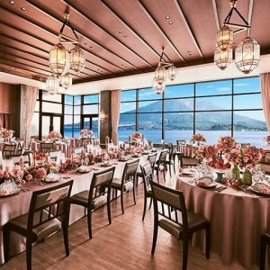 オーシャンビューが広がるホワイトを基調とした明るい会場でございます。