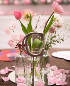 ピンクを多く使用し鏡を置きその上に花びらを散らし尚オシャレに仕上げていきます
