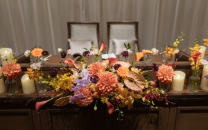 ご結婚式のコーディネートは、装花のお色味や装花の種類