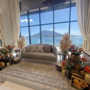 目の前には広大な海と桜島が広がっており、王道かつ非日常的な空間で皆様をおもてなしします