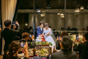 おしゃれで可愛いケーキに入刀のシーンではゲストの皆様のシャッターが止まりません!