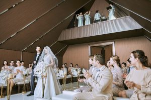 新郎様と手を取って進み、誓いを立てる祭壇への道は