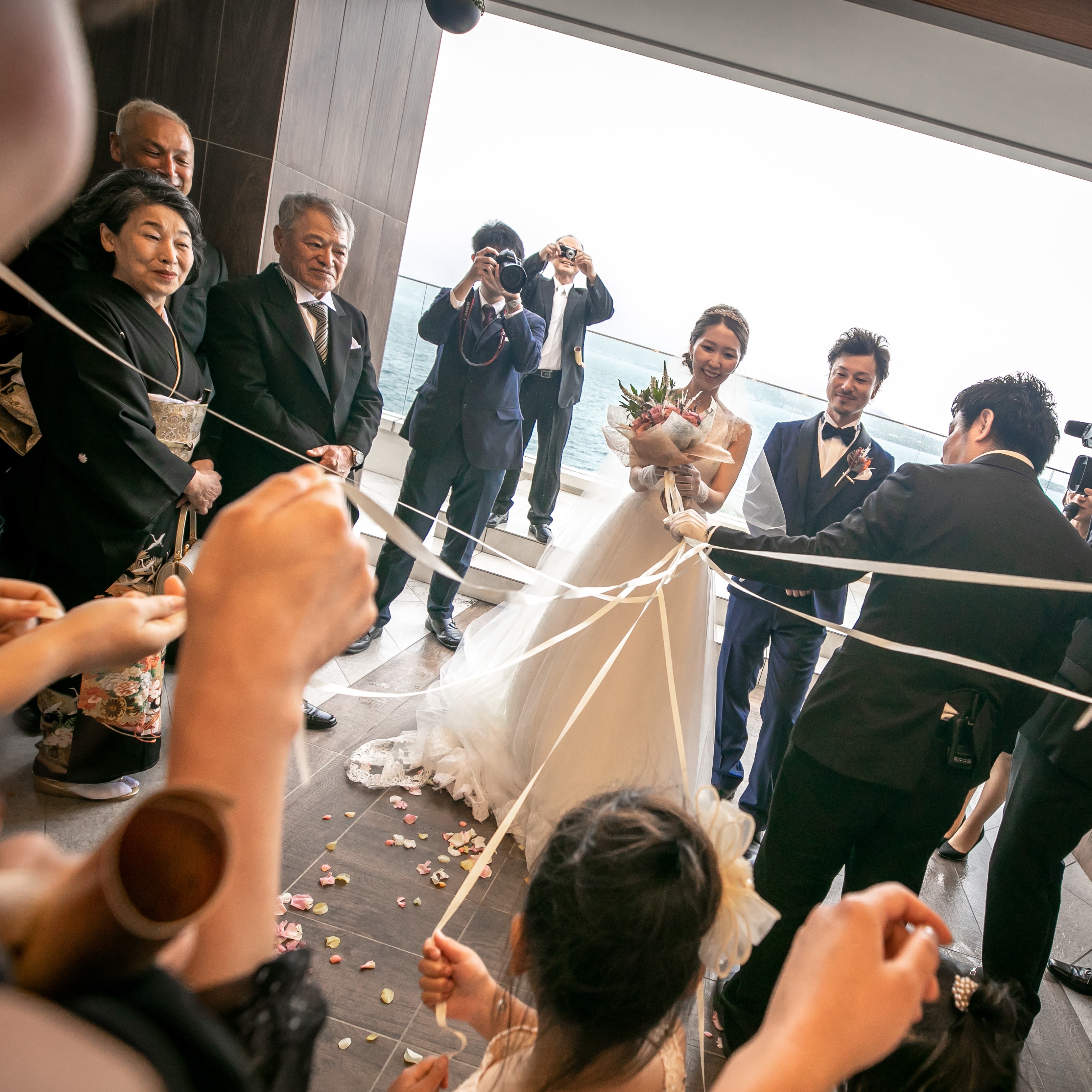 ゲストの皆様からフラワーシャワーでお迎えいただいたり