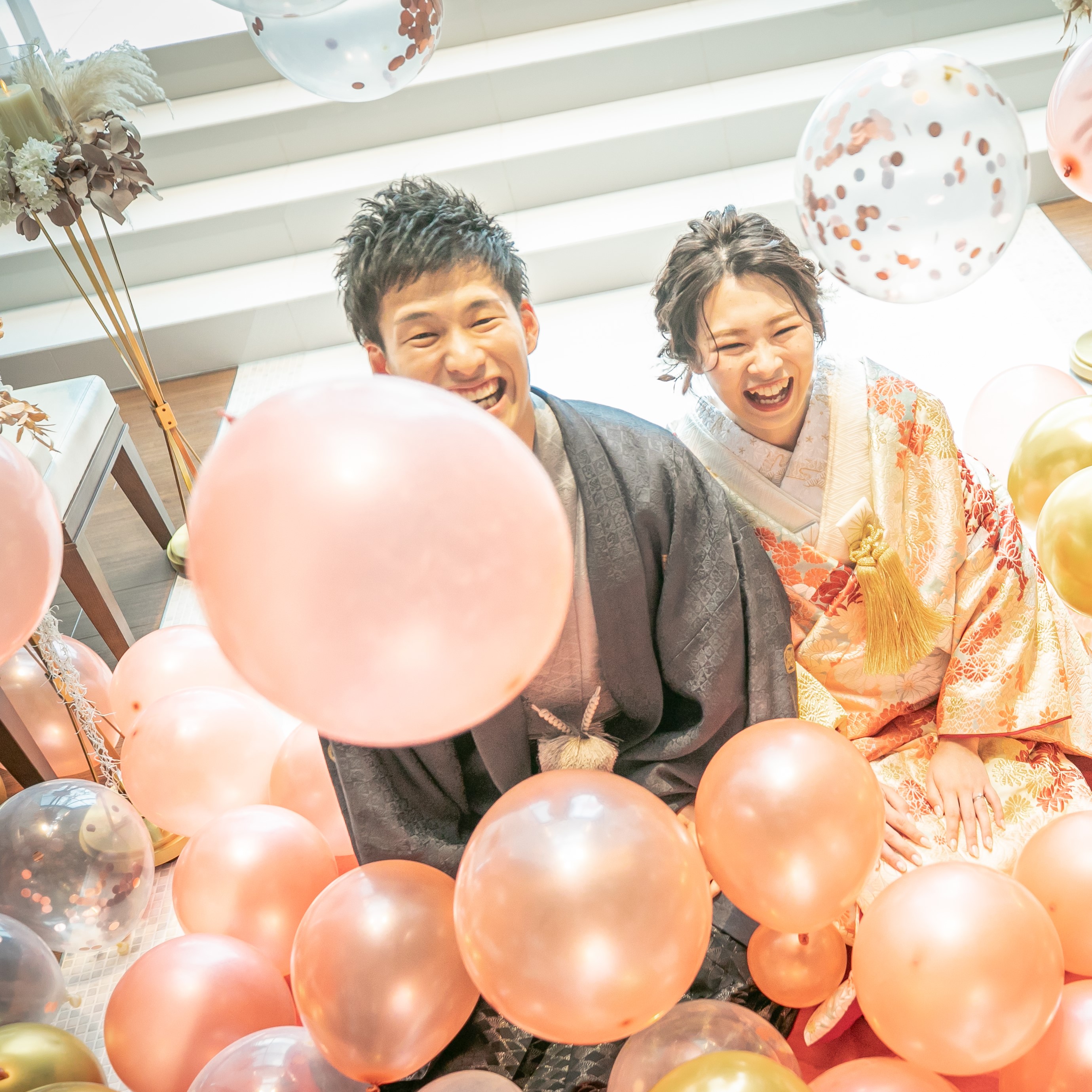 お着物の色味に合わせたカラーバルーンなら