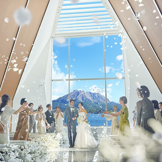 【海と桜島】自然光溢れるTHE BAYSUITE SAKURAJIMA TERRACEのチャペル*