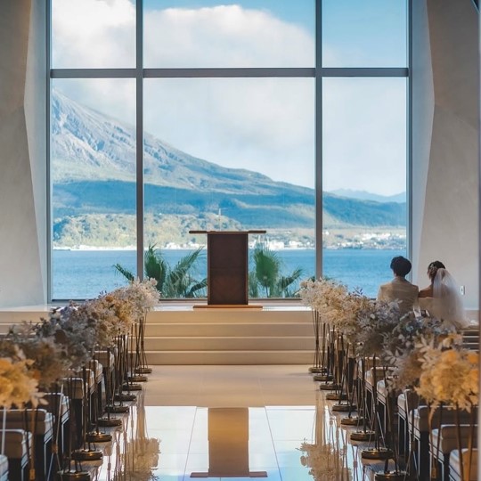 鹿児島のシンボルである桜島に見守られながら執り行う挙式は