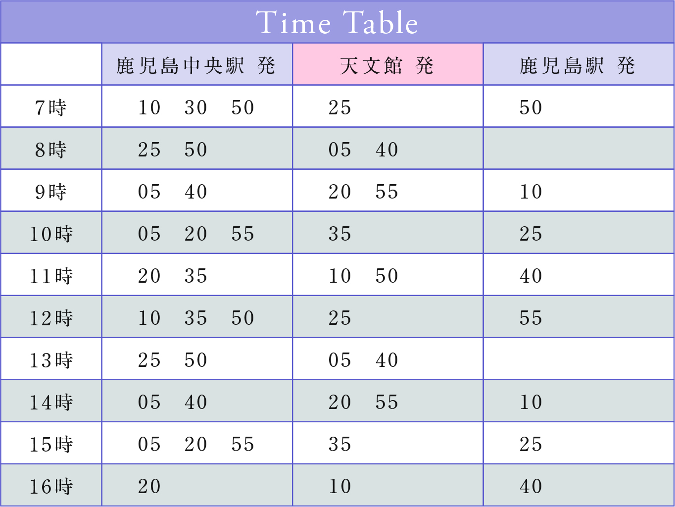 ご利用の日程に該当する時刻表をご確認のうえ、ご利用ください。