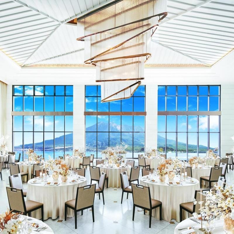 桜島を望む絶景の中で、多くのゲストに祝福される特別な一日