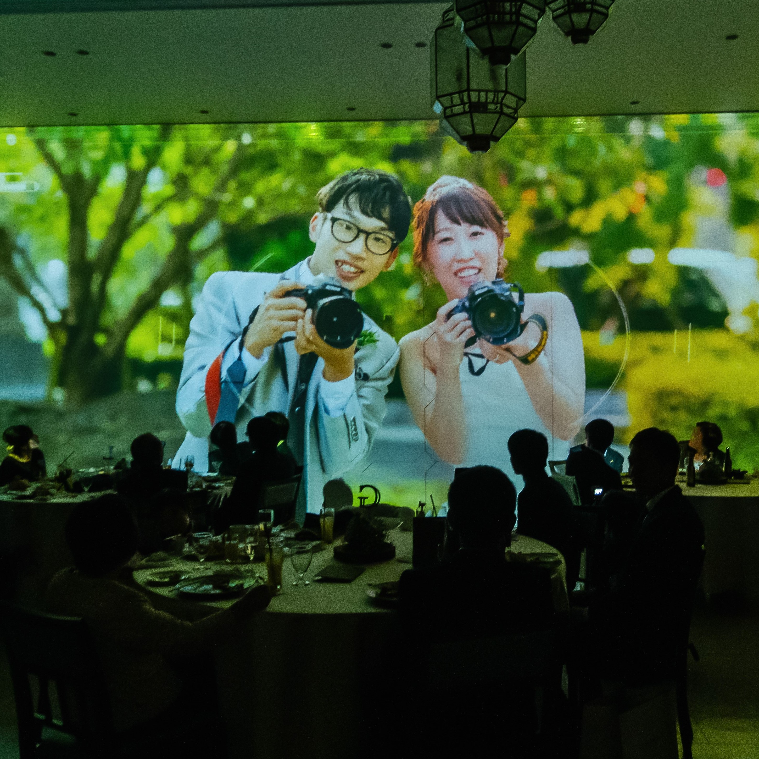 プロジェクションマッピングを使っての再入場の際、2人ともカメラを持って登場しました!