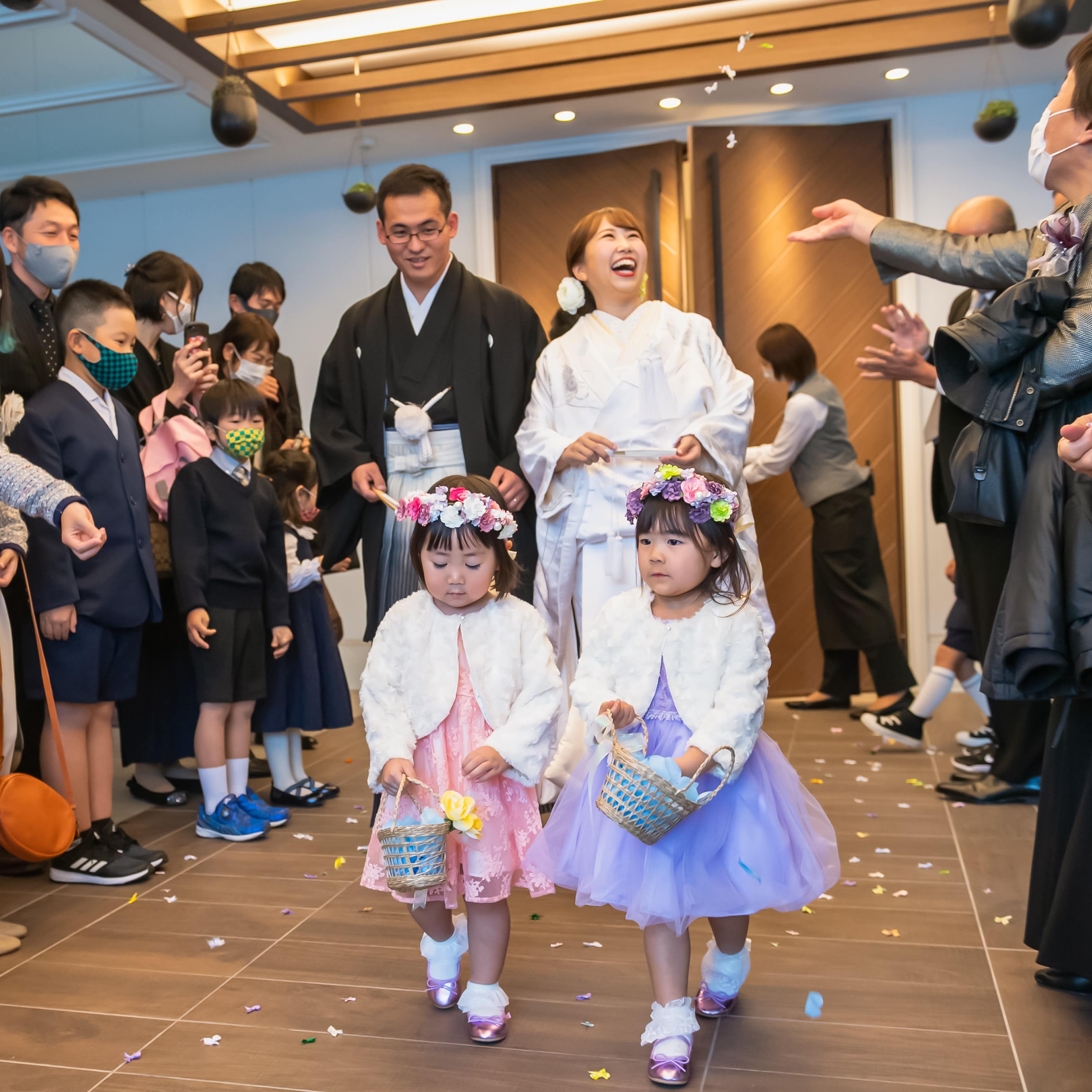 身内だけの式で60名中18名がお子様のゲストでした。連れてくる親御さんが