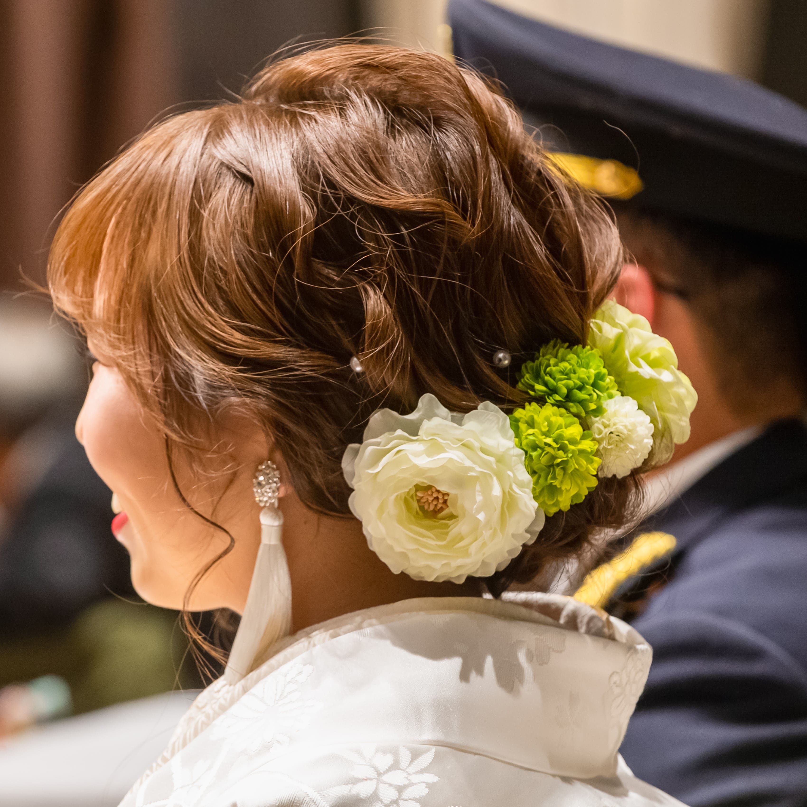 白×白だったので、披露宴では白無垢の小物を変えて色を入れたり