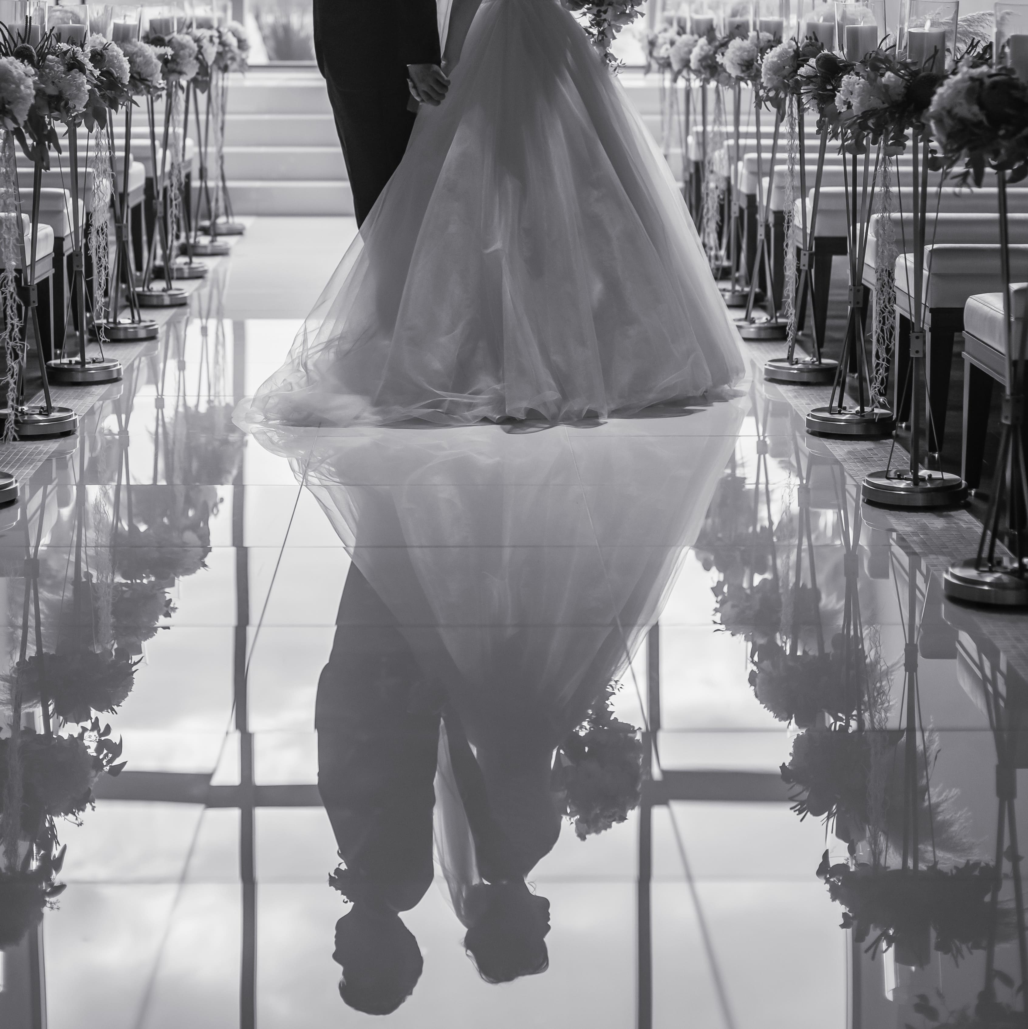 オーケストラピットが後方上部にあるので、前方は新郎新婦だけという