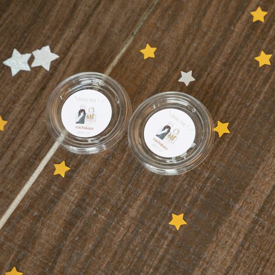 よくあるお色直しドレス当てクイズですが、新婦のドレスだけに注目されるのは、恥ずかしかったので私たちは、ドレスと新郎の蝶ネクタイの色の組み合わせでリボンワンズを作りました!皆さん考えながら選んで下さったようで、選んだ後も手に持って写真を撮ったり、ジャケットのポケットに入れたりして下さってとても嬉しかったです!お色直し登場の際は、いっぱい振ってくださって、それがとても綺麗で嬉しかったし、盛り上がったなぁと思いました。