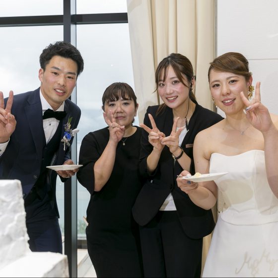 当日サポートしていただいたスタッフの皆様は、ほとんどが初めてお会いする方でしたが、常に笑顔で、フランクに接していただけたおかげで、初めてお会いした気がせず、益々式を楽しませていただきました!式が始まってからは、『ありがとうございます!』という感謝の気持ち、『みんなに会えた!』という嬉しい気持ち、この2つで胸がいっぱいになり、あっという間に時が過ぎました。